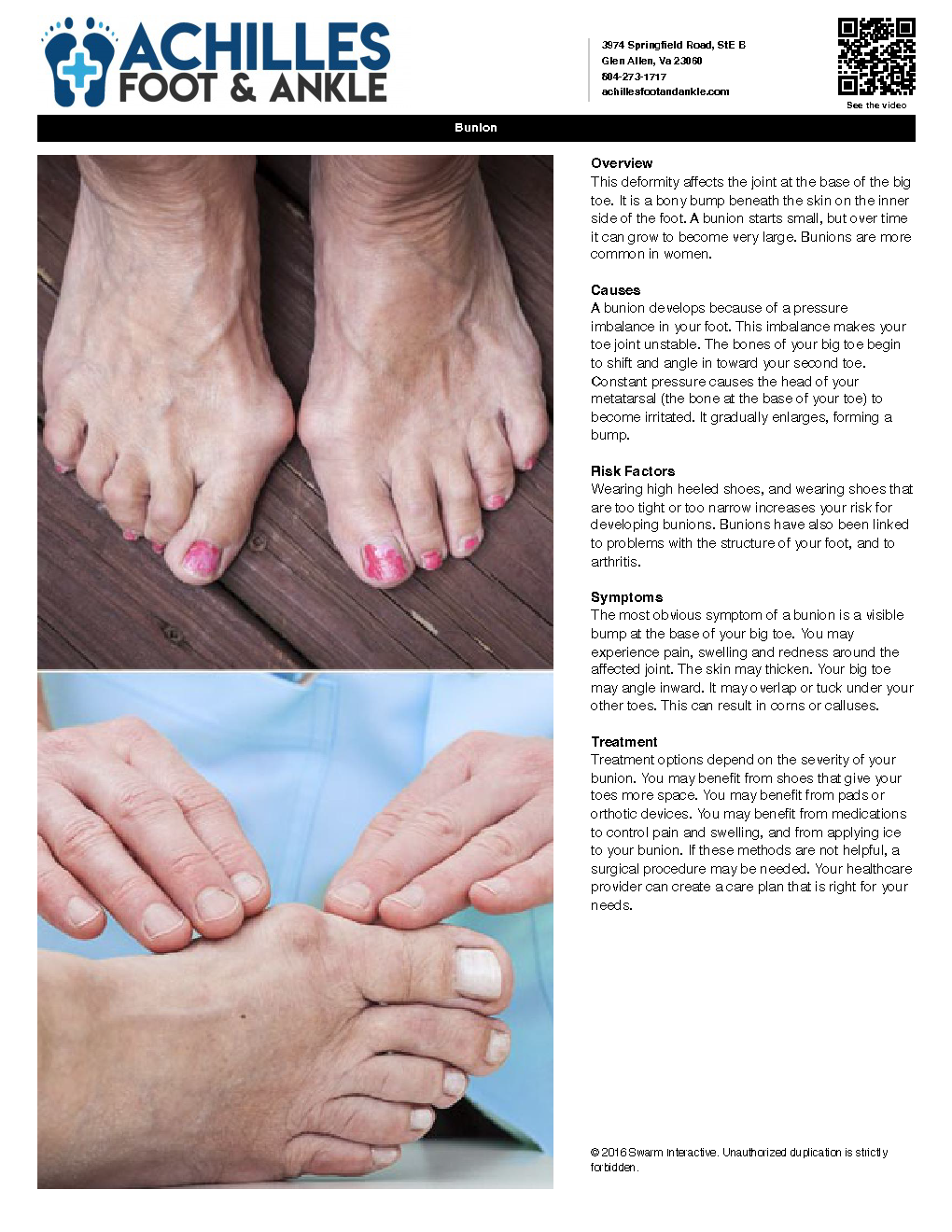 Treatment usually begins with changing footwear and using non-prescription treatments, like bunion pads, orthotics, or ice.